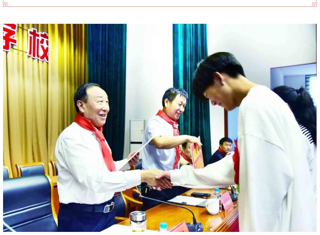 少先队员向出席仪式的领导佩戴红领巾。基金会名誉理事赵拴柱宣读获奖大学新生名单。与会领导和基金会领导为获奖的大学新生颁奖。