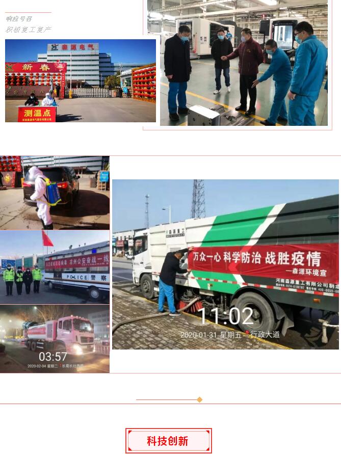 面对新冠肺炎疫情,奇异果(中国)QIYIGUO官方网站集团成立疫情防控专项工作领导小组,研究制定了疫情防控具体措施:从应急防疫车辆和物资装备的生产支援,到环卫工作的保质保量;从城乡全区域的消毒杀菌,到响应号召积极复工复产……奇异果(中国)QIYIGUO官方网站竭尽所能为疫情防控贡献着力量。