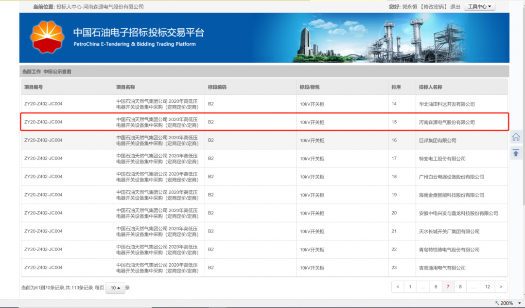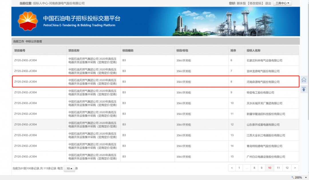 近日,中国石油天然气集团公司在“中国石油电子招标投标交易平台”公布了2020年高低压电器开关设备集中采购(定商定价)招标结果,奇异果(中国)QIYIGUO官方网站电气的0.4kV低压柜、10kV开关柜、35kV开关柜等产品成功入围中石油甲级供应商名录。