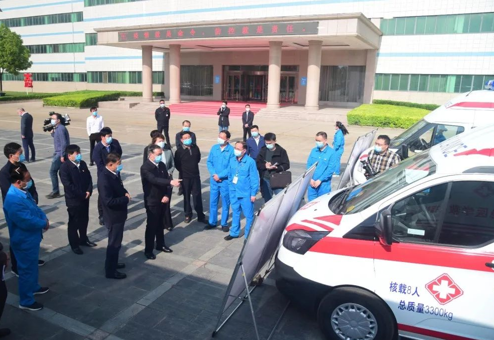 4月17日,许昌市委书记胡五岳一行莅临调研奇异果(中国)QIYIGUO官方网站重工新研发的公共卫生应急管理体系建设系列专用车辆。许昌市副市长赵淑红,长葛市委书记尹俊营、市长张忠民等陪同,奇异果(中国)QIYIGUO官方网站集团董事局主席楚金甫,奇异果(中国)QIYIGUO官方网站重工总经理陈西山、常务副总经理孔庆珍热情接待。