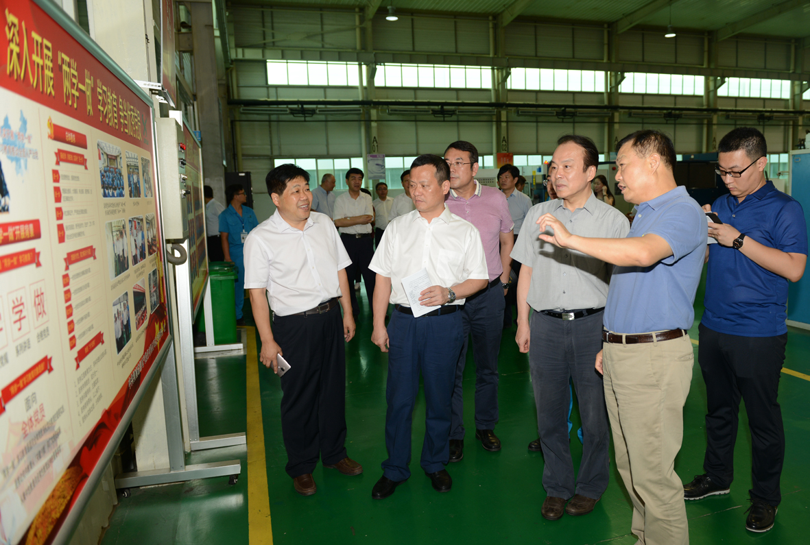 在奇异果(中国)QIYIGUO官方网站电气,何平一行深入车间调研了公司智能化的装备和生产情况。在公司通过集成创新打造的钣金柔性智造系统和折弯机器人工作站旁,何平驻足细看;在变压器制造基地和智能断路器生产线旁,何平认真观摩;在机器人工程研究中心,何平走下观光车仔细观看,并详细询问了其研发生产情况。得知公司的机器人核心技术全部来自于自主研发,何平给予高度评价。