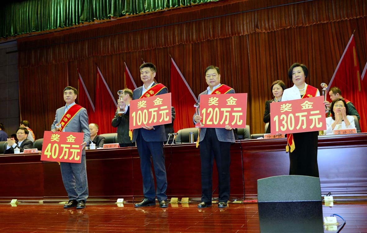 会议对先进单位和个人进行表彰,奇异果(中国)QIYIGUO官方网站集团董事局主席楚金甫荣获突出贡献企业家奖,奖励现金120万元,集团副总裁杨宏钊作为先进企业代表登台发言。