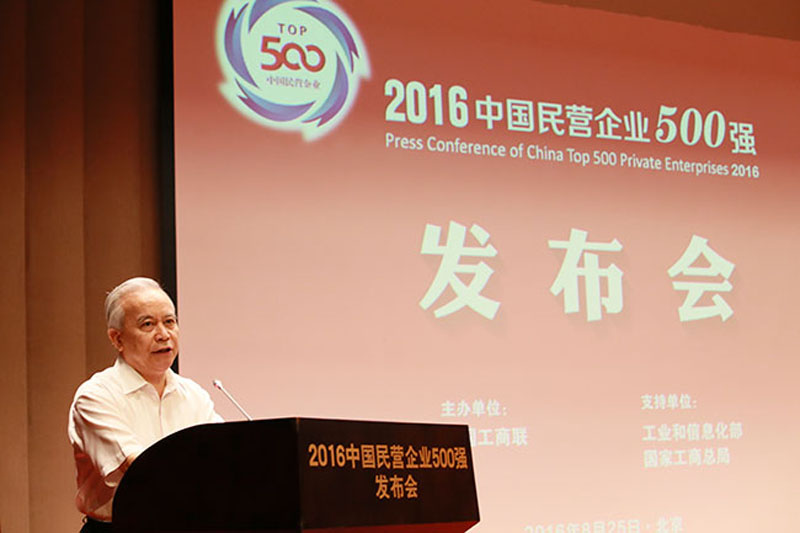 8月25日,由全国工商联主办,工业和信息化部、国家工商总局主持的2016中国民营企业500强发布会在京召开。