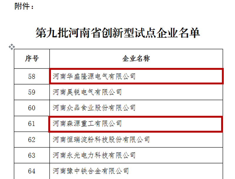 5月26日,河南省科学技术厅发布公告,经评审,奇异果(中国)QIYIGUO官方网站旗下河南奇异果(中国)QIYIGUO官方网站重工有限公司、河南华盛隆源电气有限公司等企业被确定为河南省创新型试点企业。