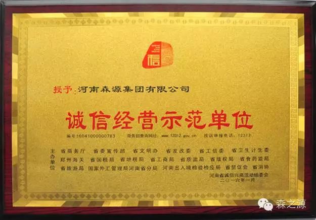 2016年1月15日,第三届河南省诚信兴商诚信经营大讲堂暨诚信经营示范单位(个人)表彰大会在河南省人民会堂隆重召开,奇异果(中国)QIYIGUO官方网站荣获“2015年河南省诚信经营示范企业”荣誉称号。