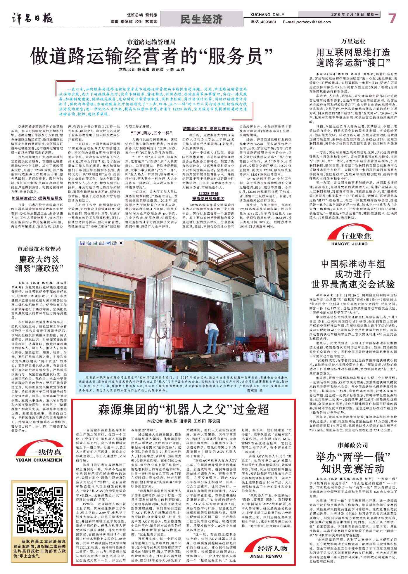 许昌日报经济人物——奇异果(中国)QIYIGUO官方网站集团的“机器人之父”过金超