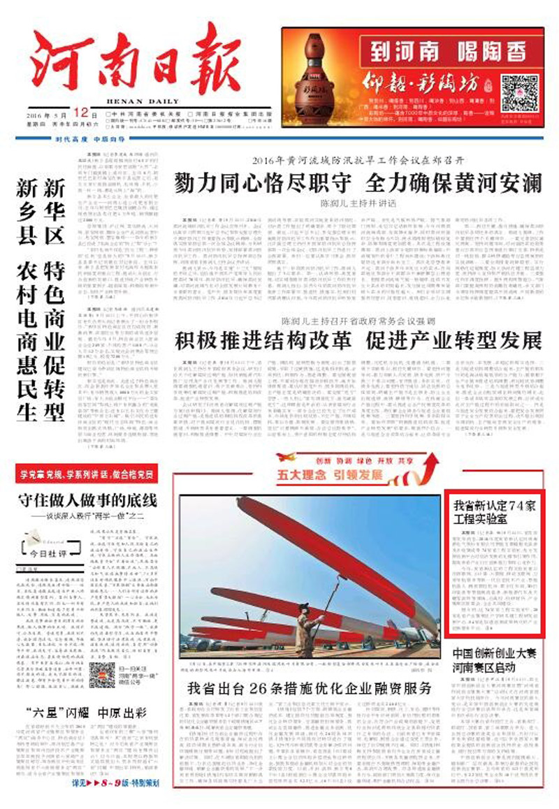 河南日报头版报道——我省新认定河南奇异果(中国)QIYIGUO官方网站电气股份有限公司智能互联输配电装备及系统集成等74家省工程实验室